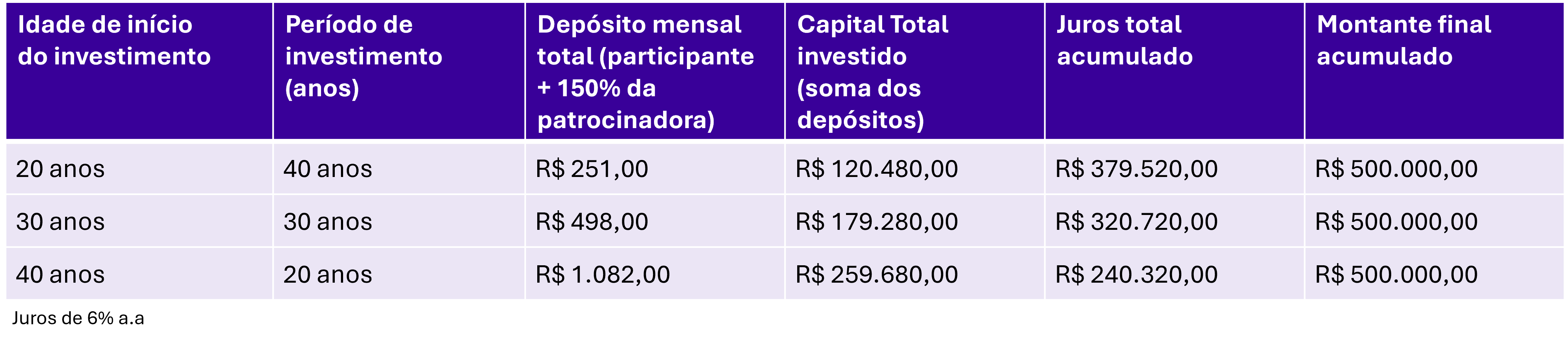 Entre esses três fatores, o tempo e os juros compostos têm um papel especial. São eles que fazem contribuições pequenas no presente ganharem mais força lá na frente.